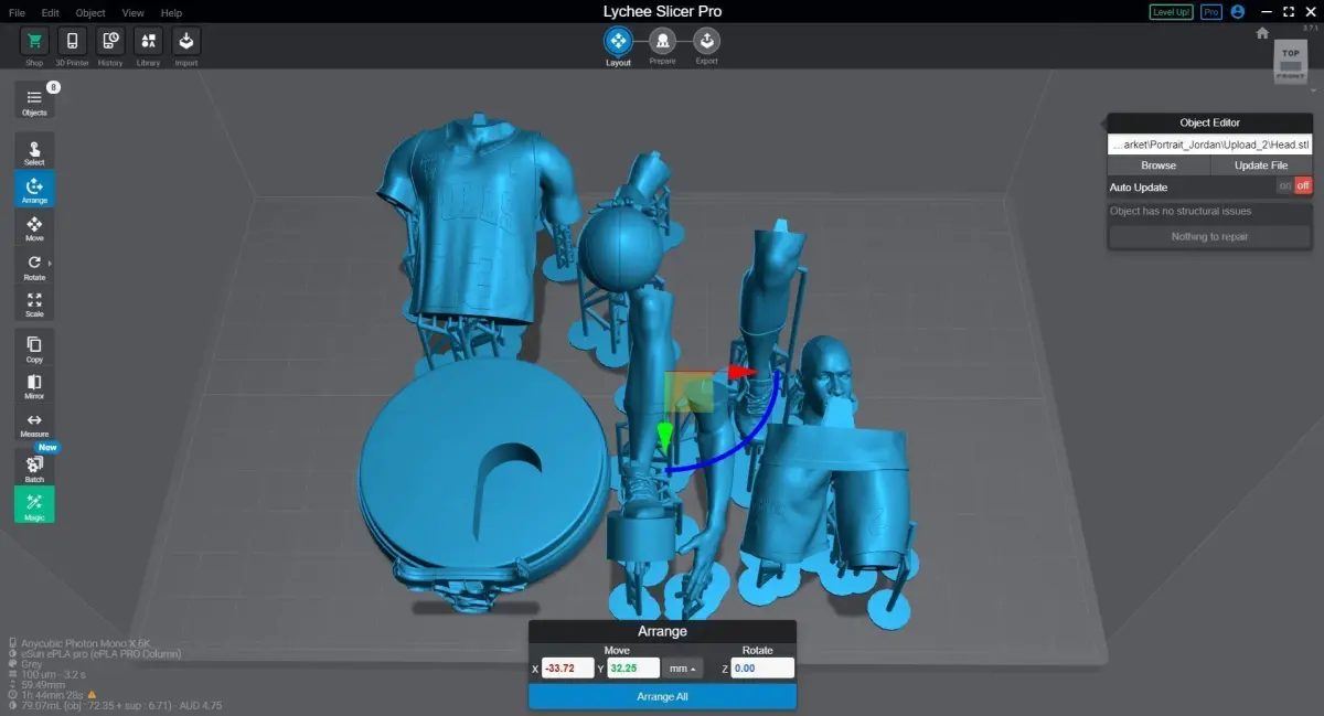 Split Zbrush file to print (9 parts)