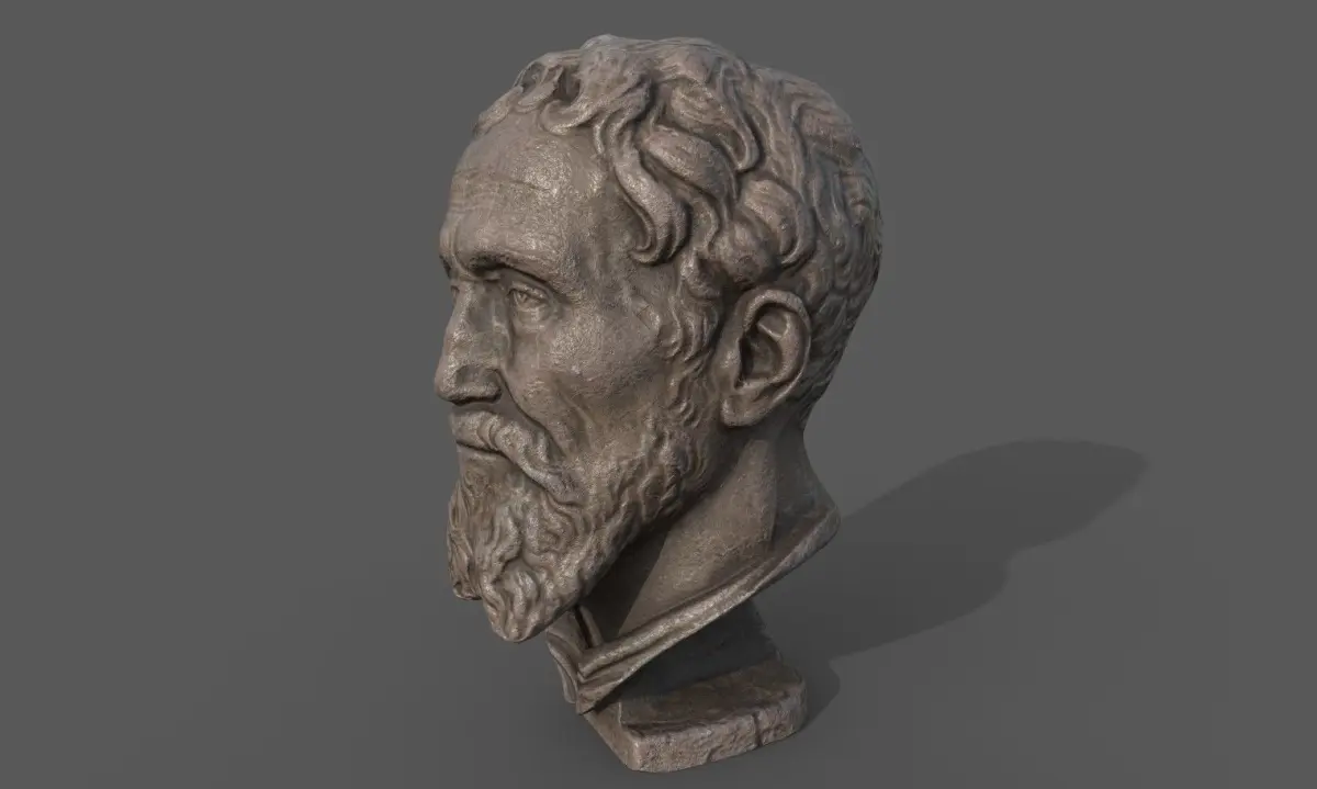 low poly sculpture model of Michelangelo's head for use in Architectural visualization, AR, and game engines