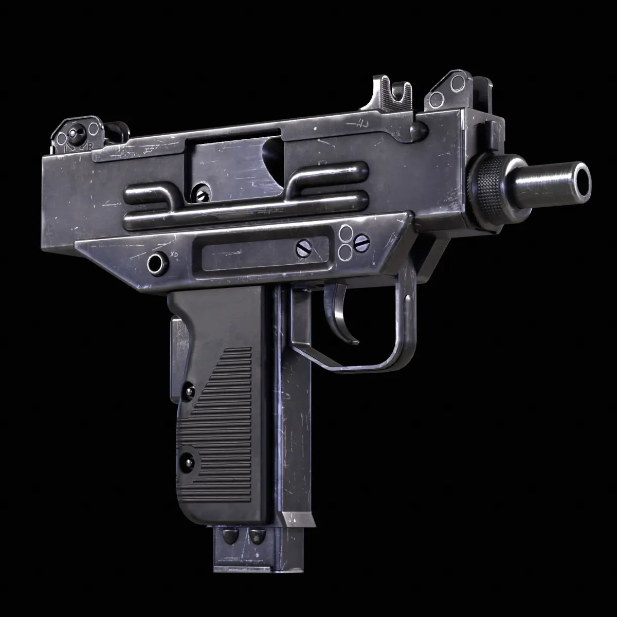Micro Uzi 3D model. This model comes with the Micro Uzi and 1 texture set. Modeled in Maya and textured with Substance Painter and Photoshop. The model is built to scale and is UV unwrapped with 4k textures. Includes 3D model and textures!