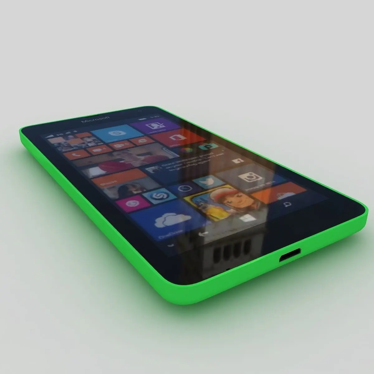 This 'Microsoft Lumia 535 Green' is a high quality, photo real model that will enhance detail and realism to any of your rendering projects, detailed design that allows for close-up renders, and was originally modeled in 3DS MAX 2009 and rendered with V-Ray