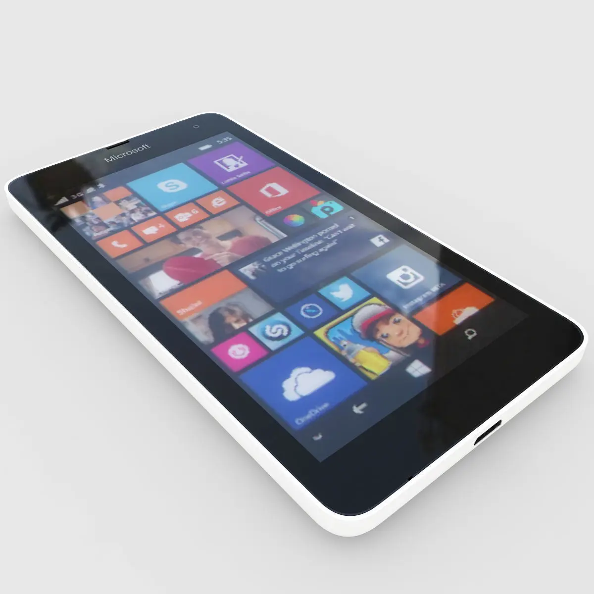 This 'Microsoft Lumia 535' is a high quality, photo real model that will enhance detail and realism to any of your rendering projects, detailed design that allows for close-up renders, and was originally modeled in 3DS MAX 2009 and rendered with V-Ray