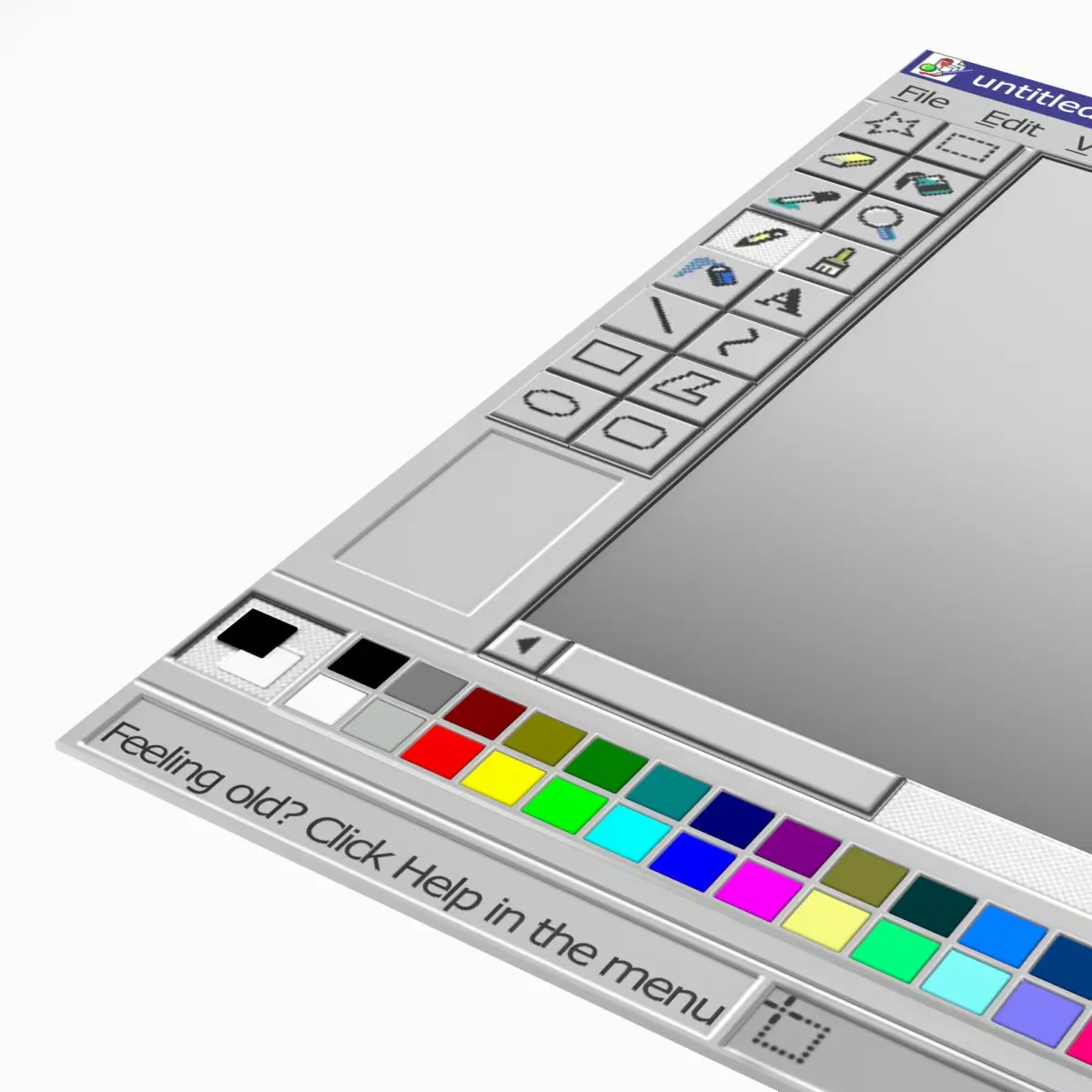 A digital representation of Microsoft Paint Mirror, with Windows XP color palette for the mirror frame, toolbars and color palettes.