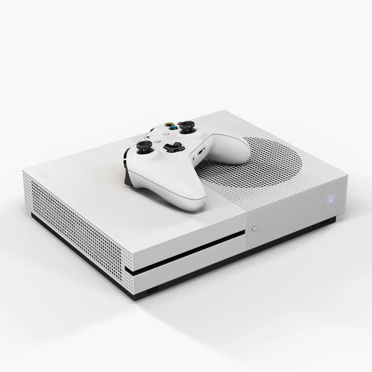 • Let me present to you high-quality low-poly 3D model Microsoft Xbox One S. This model can be used in various fields 3D Graphics such as game development, advertising, interior design, motion picture art, visualization, etc... Modeling was made with ortho-photos of real console that is why all details of design are recreated most authentically.