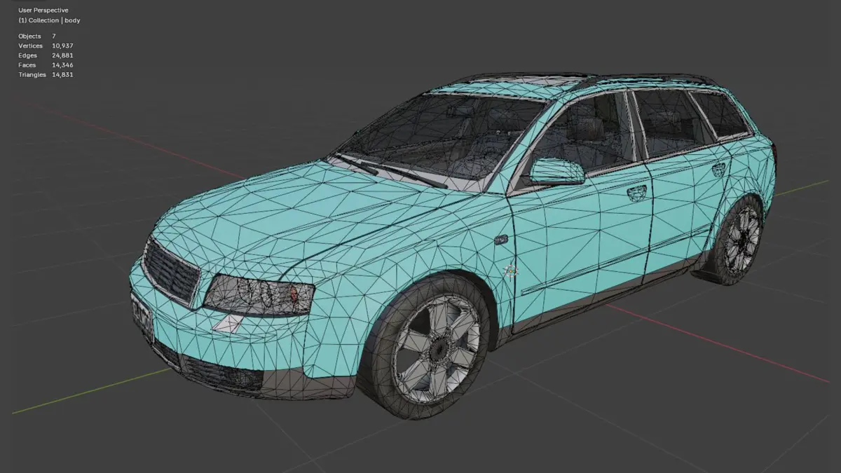 - • This is a mid-poly 3D model of a European-style station wagon from the mid-2000s era. Its design reflects practical urban utility with clean lines and a functional shape, making it ideal for use in games, visualizations, driving simulations, VR/AR applications, and 3D printing.