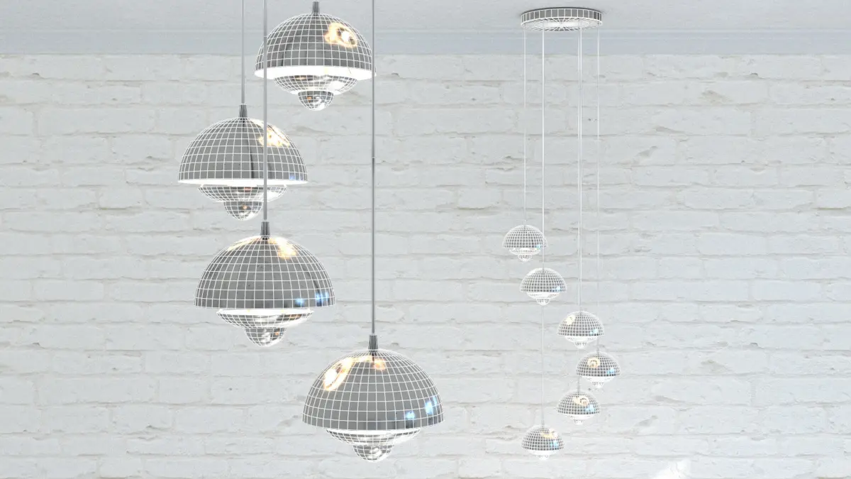 High Quality 1970 Sputnik Cascade Ceiling Lamp for VFX and game production.