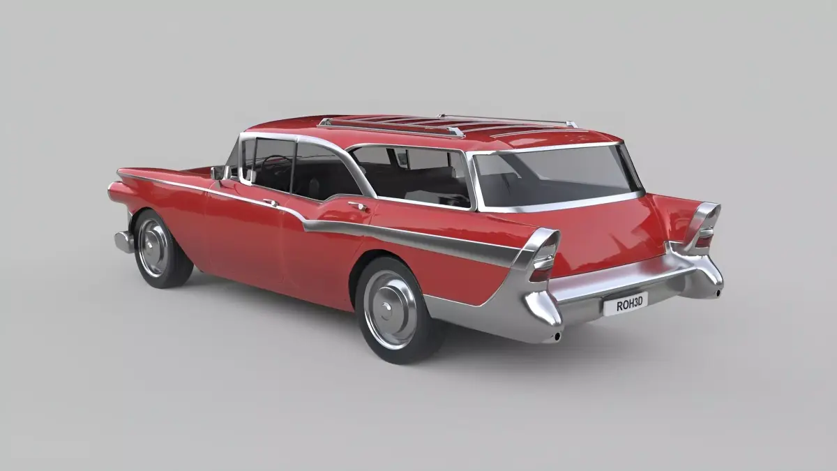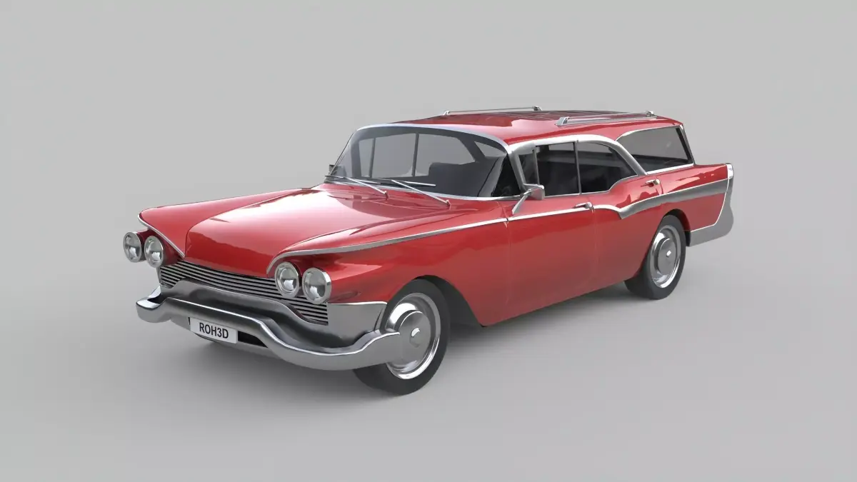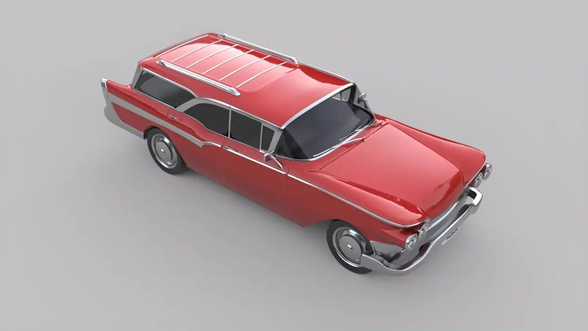 This generic classic station wagon is inspired by iconic mid-century American family cars from the late 1950s to early 1960s. Featuring a long body, rounded forms, rich chrome accents, and a practical wagon silhouette, this model perfectly captures the spirit of vintage suburban life and classic road trips.