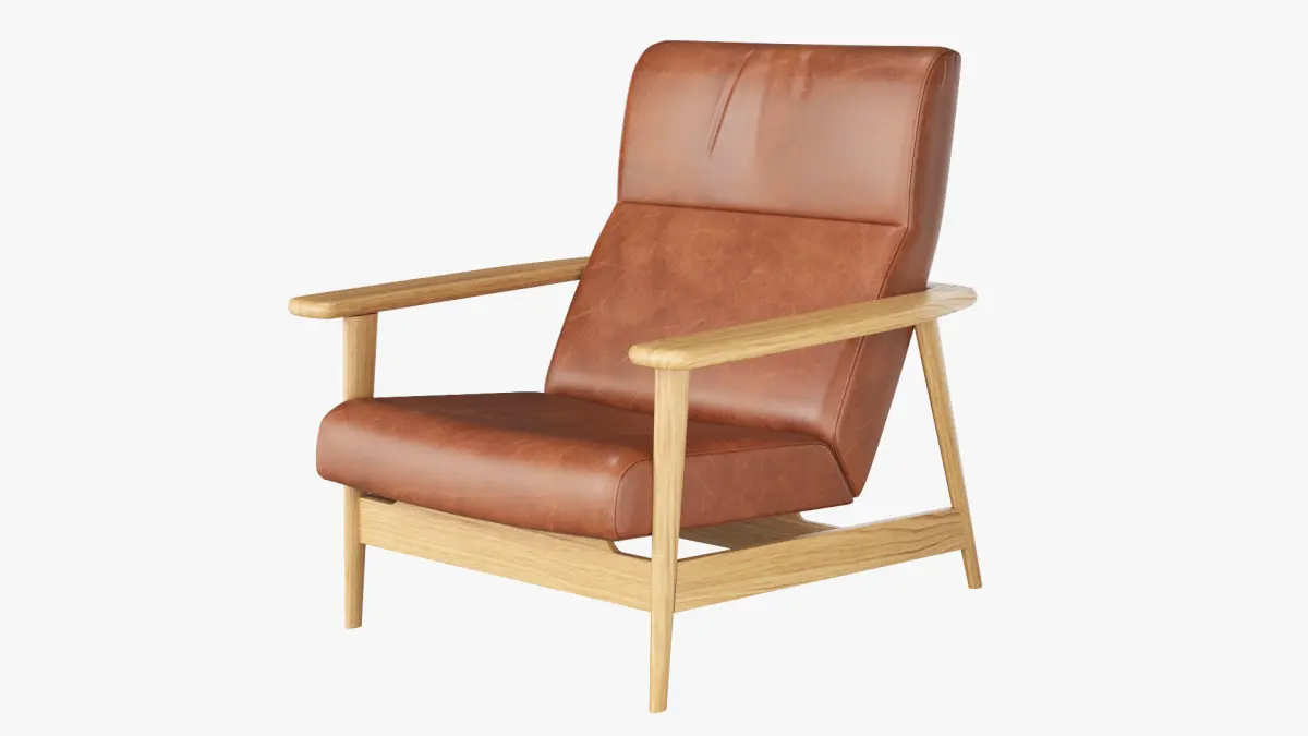 - 2 Materials included - Aniline leather & Solid oak wood arms and legs in a Natural Oak finish.