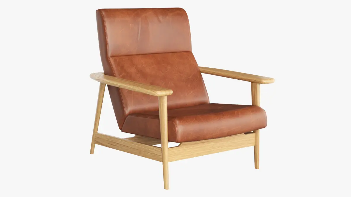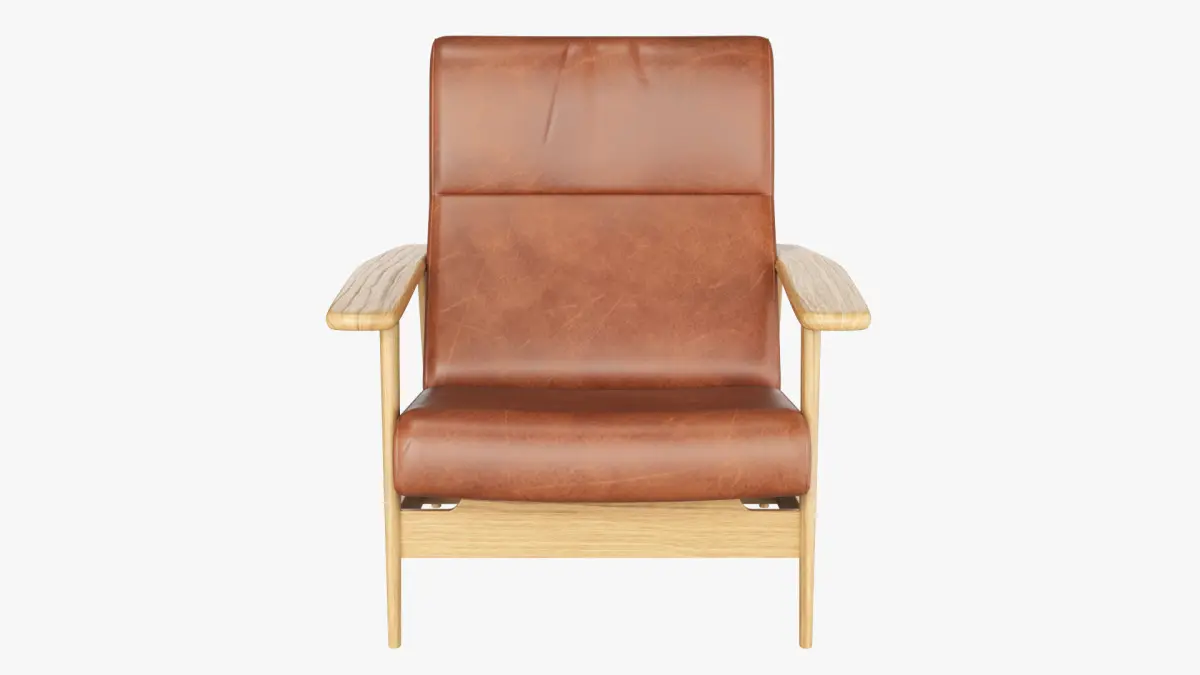 Named for the way its leather seat peeks through its solid wood frame, our Mid-Century Show Wood High-Back Leather Armchair packs good looks and comfort into one sleek silhouette. A wide, welcoming seat and slightly pitched high back complement its sculptural frame.