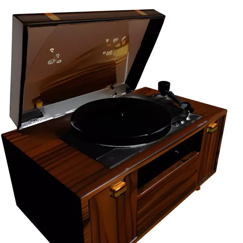 This highly detailed 3D model represents a classic Mid-Century Modern Record Player Console, meticulously designed to capture the elegance and nostalgia of vintage audio equipment. It features a fully integrated turntable with a spinning vinyl record, a precision tonearm, and intuitive control buttons, all housed within a beautifully crafted wooden cabinet. The console boasts a sleek, clear acrylic dust cover, golden hardware accents, and sturdy wooden legs, reflecting a timeless aesthetic. This versatile asset is perfect for a wide range of applications, including sophisticated architectural visualizations, enriching interior design projects, and adding authentic period detail to game environments or virtual reality (VR) and augmented reality (AR) experiences. Its robust design also makes it suitable for high-quality digital art and animation. The model comes with clean, optimized topology, ensuring smooth performance and easy integration into various scenes. It is fully UV unwrapped with professionally crafted PBR (Physically Based Rendering) textures, providing realistic wood grain, metallic sheens, and translucent plastic effects for stunning visual fidelity. Supported file formats include GLB, OBJ, FBX, USD, DAE, and ABC, making it compatible with most major 3D software and game engines. While ideal for static renderings and cinematics, it is also optimized for real-time applications, offering a perfect balance between detail and performance.