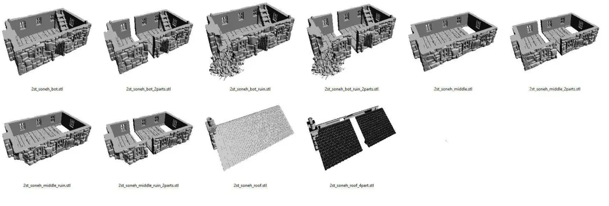 You will get all files to print many different Buildings and ruins. Delivered in downloadable .stl file format for your 3D Home printer.