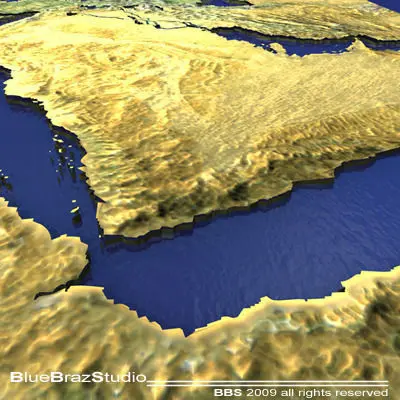 C4D file (obj-dxf-3ds) for a 3D relief map of Middle East.All formats zip files has enclosed tex, material and maps. But it could need some texture reassigning.Polygons 19269Vertices 35699