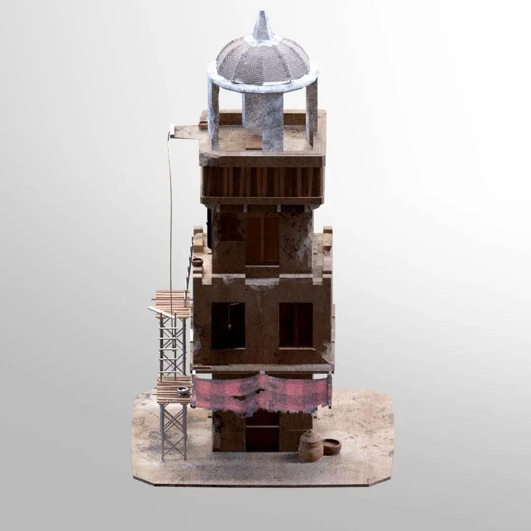 Middle East Style Old Adobe Building Design 3D