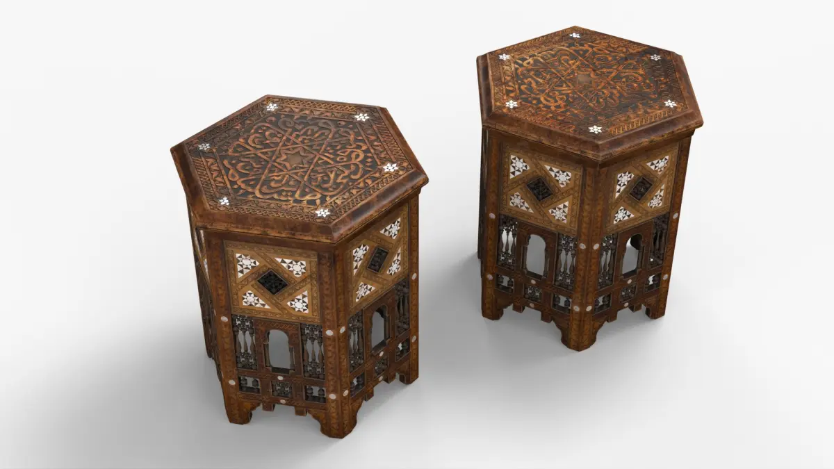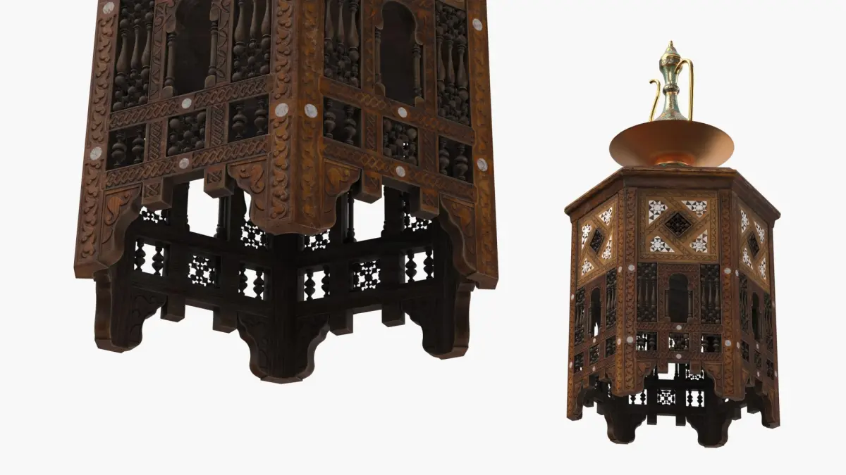 Middle Eastern Pitcher Set on Hand-Carved Side Table is a high quality, photo real 3d model that will enhance detail and realism to any of your rendering projects. The model has a fully textured, detailed design that allows for close-up renders, and was originally modeled in 3ds Max 2020 and rendered with V-Ray. Renders have no postprocessing!
