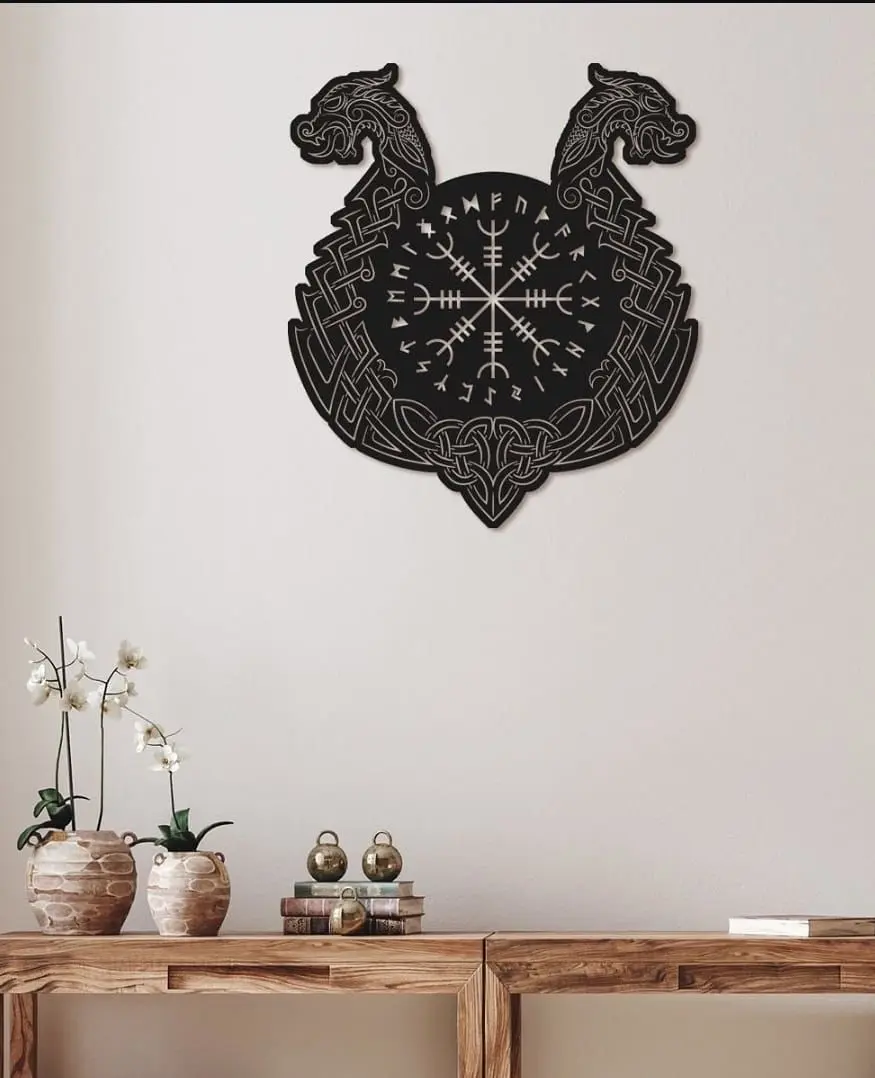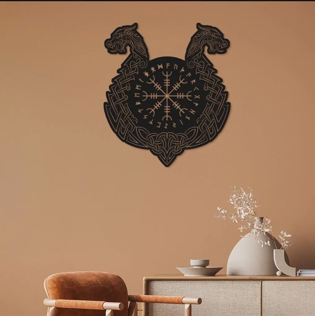 Scandinavian Style Wall Decoration In Scandinavian mythology, it is the name of the world where mortals live. It is believed that a great sea monster named Jormungand lives in the ocean surrounding Midgard. This mythological belief depicted in this design is a candidate to be a perfect collection piece for your home. A collection of household items and everyday objects. A search for personal development. Reorganizing daily habits at home.