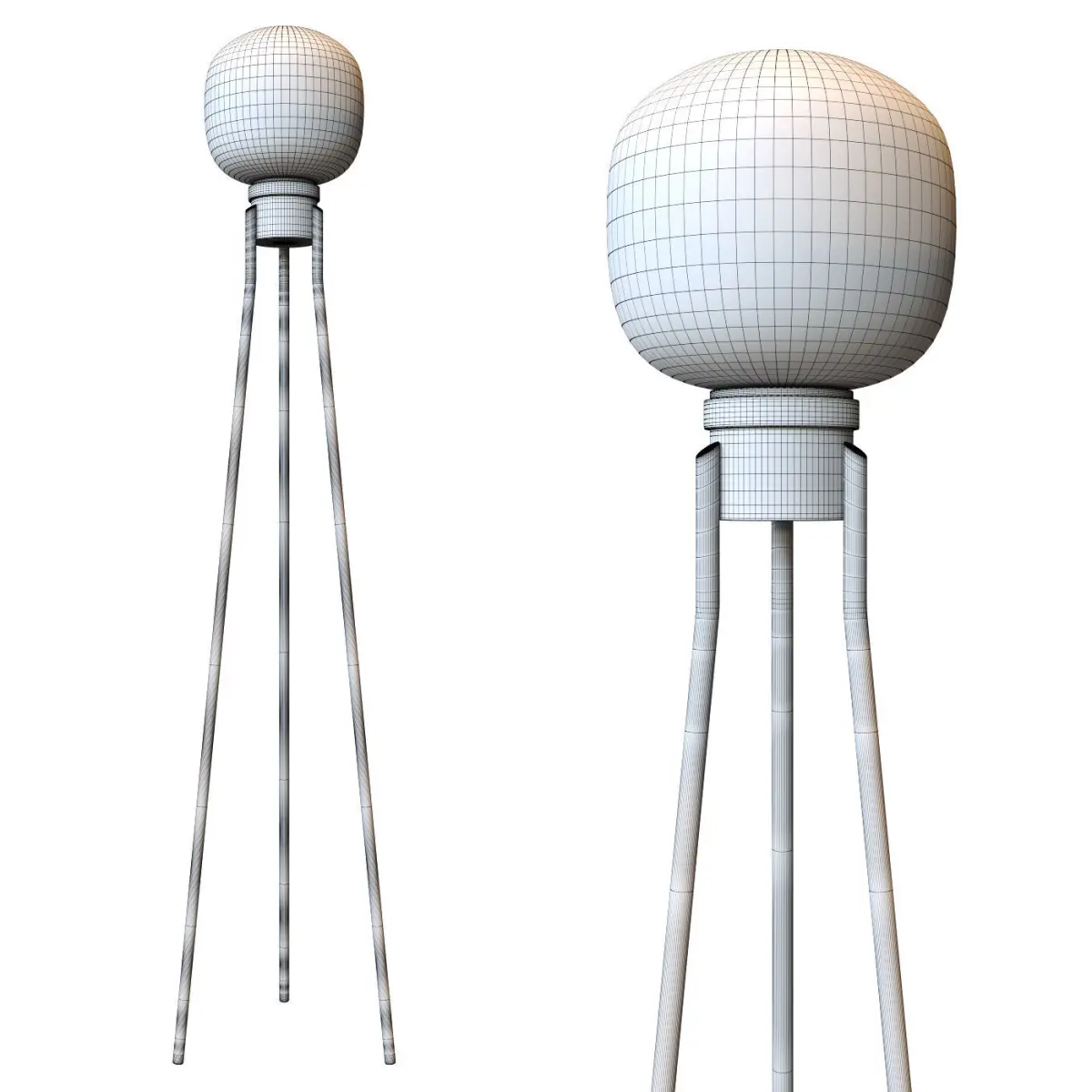 Ghost is a floor lamp with diffused light. The base is made with metal rods painted in the single variant of black metal and gold details. Glass diffuser in the mixed transparent and satin finish allows better light diffusion in the room.