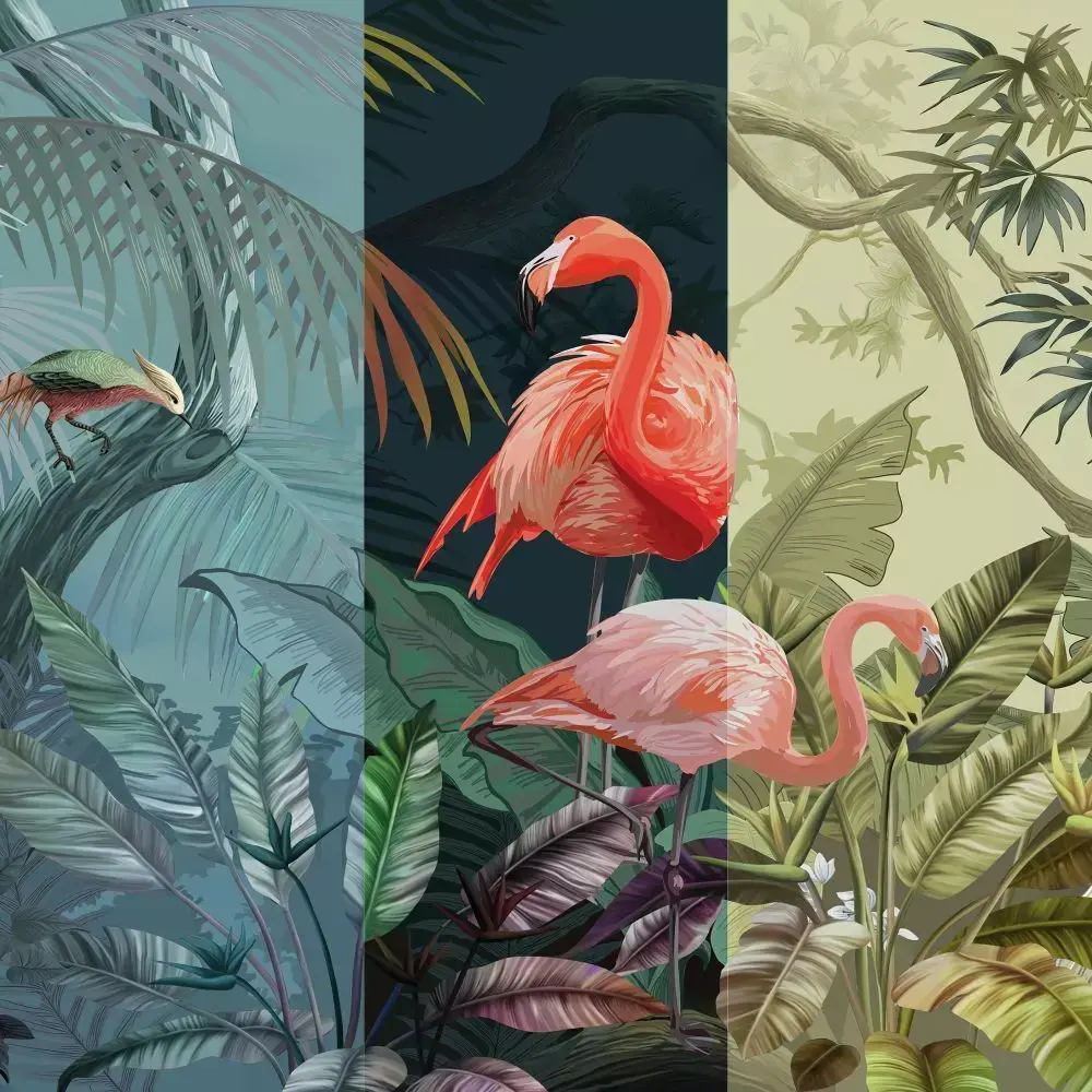 NotesRecommended real‑world repeat: 2–4 m to keep flamingo proportions realistic and foliage scale immersive on feature walls.