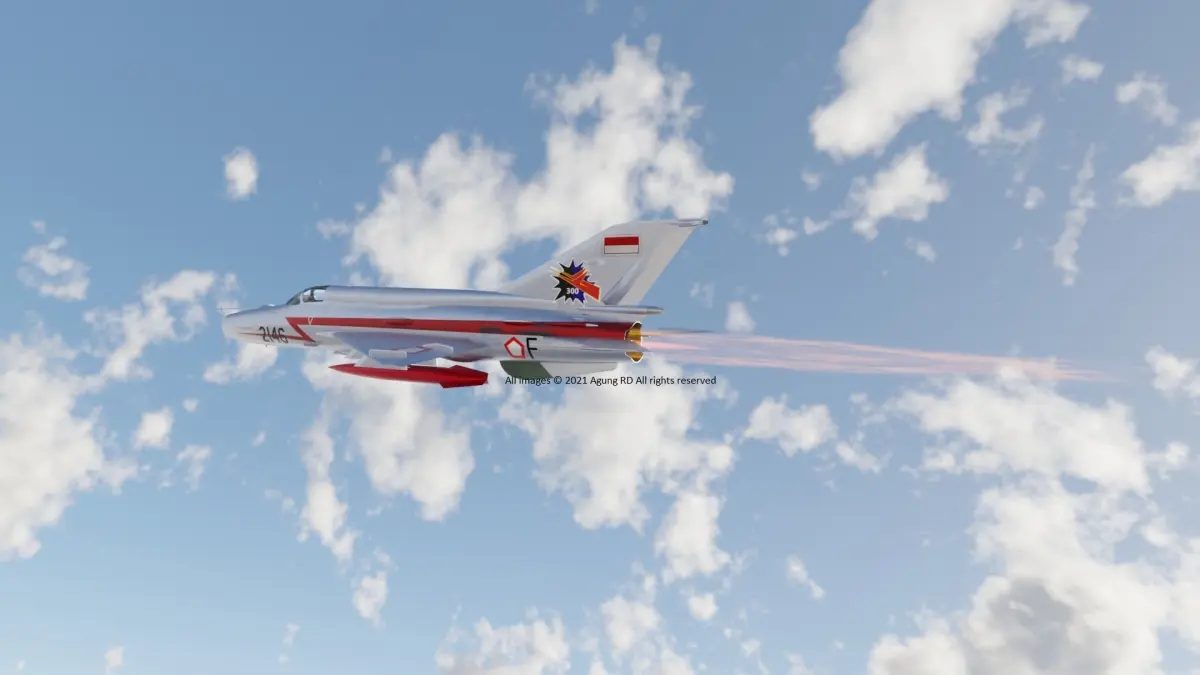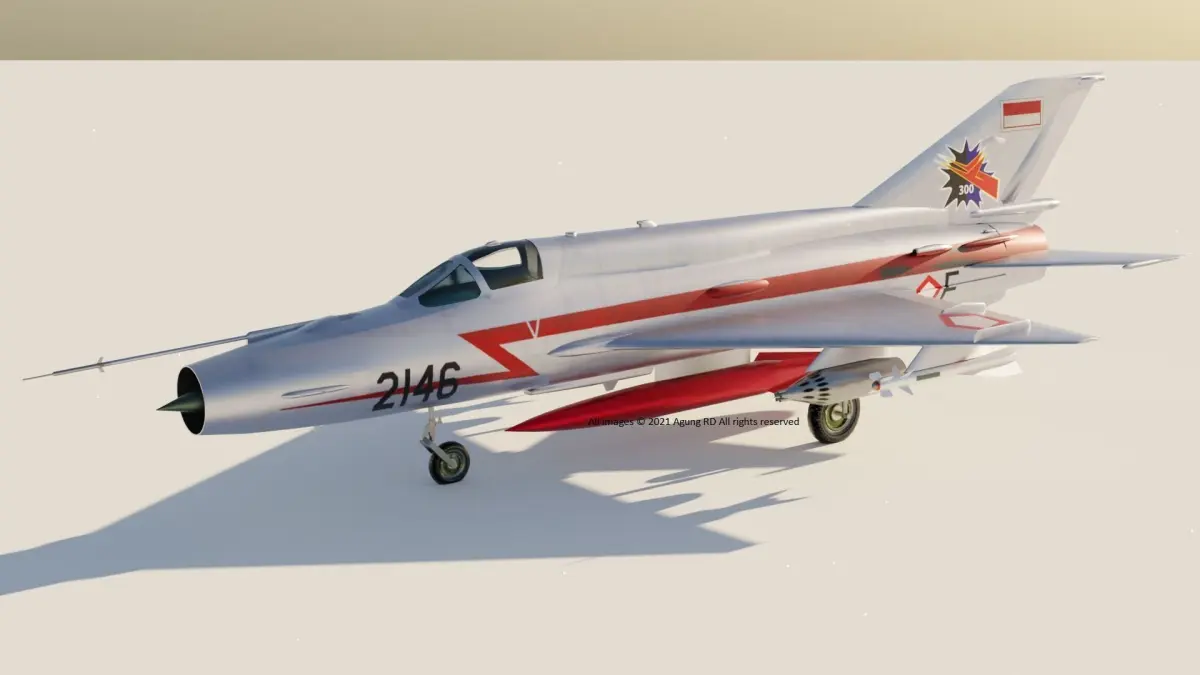 3D model of the MiG 21 Fishbed hybrid of MiG21 BIS and F-13 variation of the AURI MIG-21 fighter jet. With the R60 Vympel missile and R11 engine. The model is mainly based of the unit in display at Museum Satria Mandala Jakarta.
