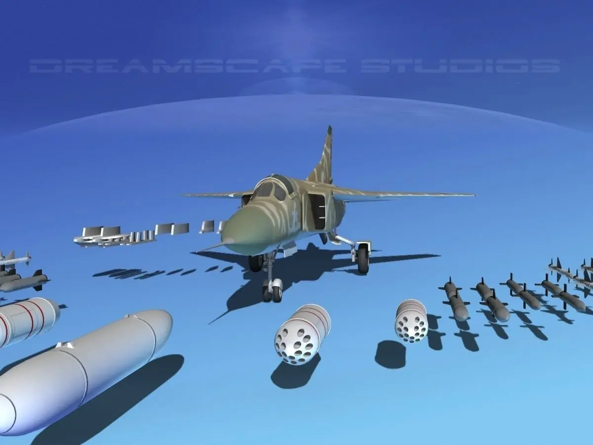 The MIG-23 Flogger B model here is a complete replacement for our earlier MIG-23 model from 2005. This model has been completely rebuilt from scratch using a vast area of resources recently acquired. It was built very near to scale, within a few inches of actual general dimensions and very detailed. It has a very detailed exterior, engine exhaust and after burner section as well as cockpit. It is fully textured including flight instruments and engine exhaust components. It has many animateable features including variable sweep or geometry wings, flaps, flaperons, stabilizers, rudder, wheels, landing gear and landing gear doors, missiles and rockets, opening canopy, throttle and stick, toggle switches and others. It has high quality maps and materials. This model is available in a wide range of formats.