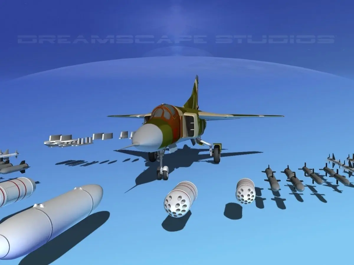 The MIG-23 Flogger B model here is a complete replacement for our earlier MIG-23 model from 2005. This model has been completely rebuilt from scratch using a vast area of resources recently acquired. It was built very near to scale, within a few inches of actual general dimensions and very detailed. It has a very detailed exterior, engine exhaust and after burner section as well as cockpit. It is fully textured including flight instruments and engine exhaust components. It has many animateable features including variable sweep or geometry wings, flaps, flaperons, stabilizers, rudder, wheels, landing gear and landing gear doors, missiles and rockets, opening canopy, throttle and stick, toggle switches and others. It has high quality maps and materials. This model is available in a wide range of formats.