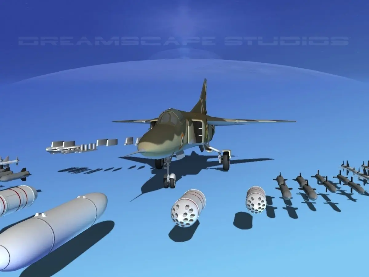 The MIG-23 Flogger B model here is a complete replacement for our earlier MIG-23 model from 2005. This model has been completely rebuilt from scratch using a vast area of resources recently acquired. It was built very near to scale, within a few inches of actual general dimensions and very detailed. It has a very detailed exterior, engine exhaust and after burner section as well as cockpit. It is fully textured including flight instruments and engine exhaust components. It has many animateable features including variable sweep or geometry wings, flaps, flaperons, stabilizers, rudder, wheels, landing gear and landing gear doors, missiles and rockets, opening canopy, throttle and stick, toggle switches and others. It has high quality maps and materials. This model is available in a wide range of formats.