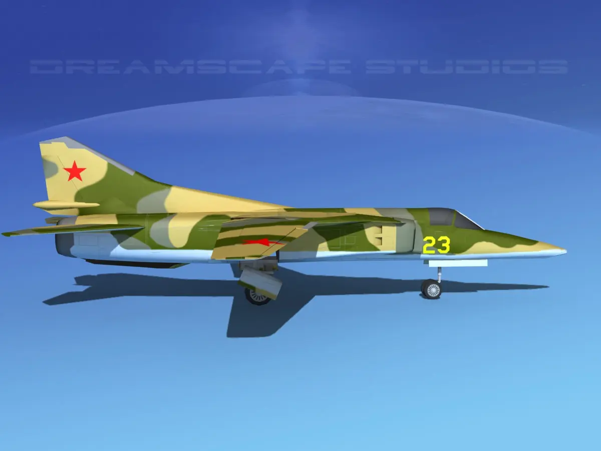 This low poly MIG-27 3model was built near to scale in general dimensional terms. It includes landing gear and wings are in the most forward sweep position. This model has animateable flaps, slats, stabilizers and rudder. Landing gear can be rotated hidden and landing gear bay doors closed. This model comes with the materials and textures and is available in a wide range of formats.