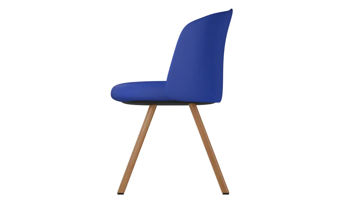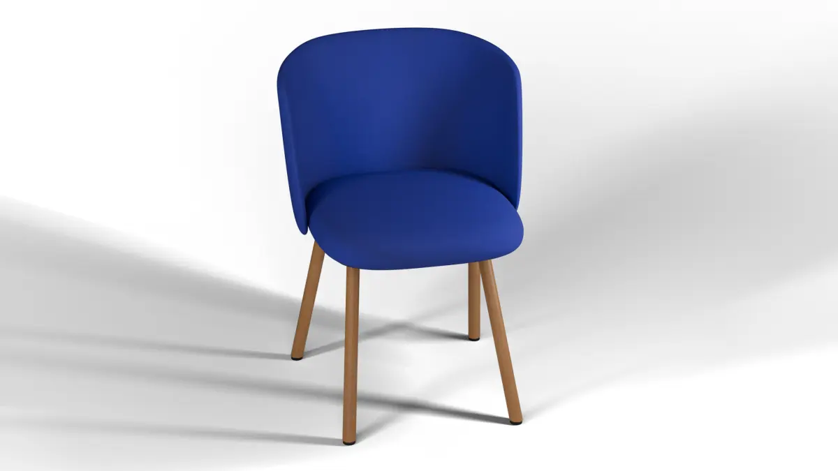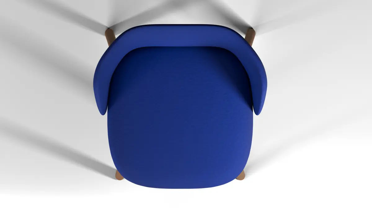The material of the model is Blue fabric, light oak and black textured plastic.