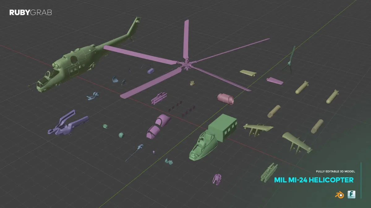 The Mil Mi-24 Helicopter model is a highly detailed and realistic representation of the iconic attack helicopter. It features intricate details, making it ideal for both rendering and interactive applications. The package includes .blend and .fbx files, ensuring compatibility with various software and workflows. This versatile model is perfect for use in games, animations, and visualizations, providing accurate proportions and clean geometry for optimal performance.