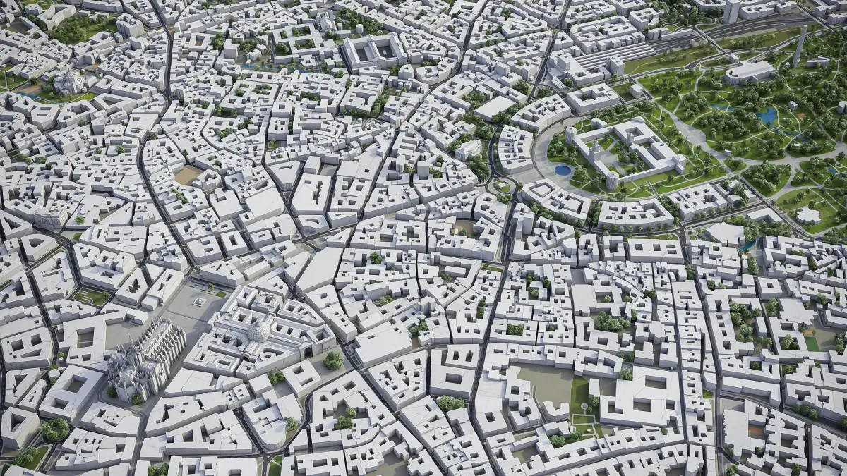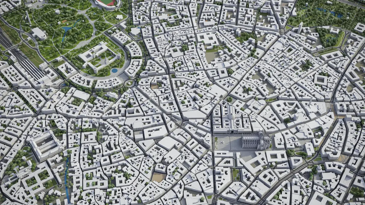 - This is 3D city model of downtown Milan, Italy