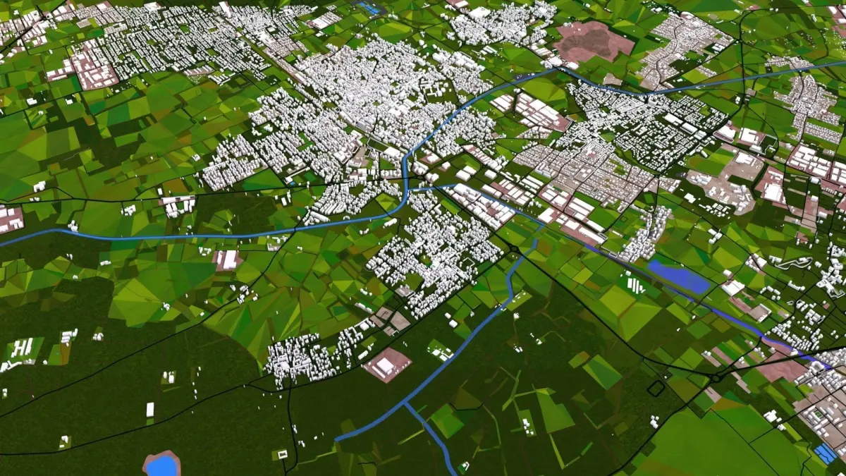 You can easily add details to the city with the data provided. For example this city scene doesn't include trees and vegetations, but you can simply scatter or clone trees on the surface (just select forest, tree, landcover, etc.).