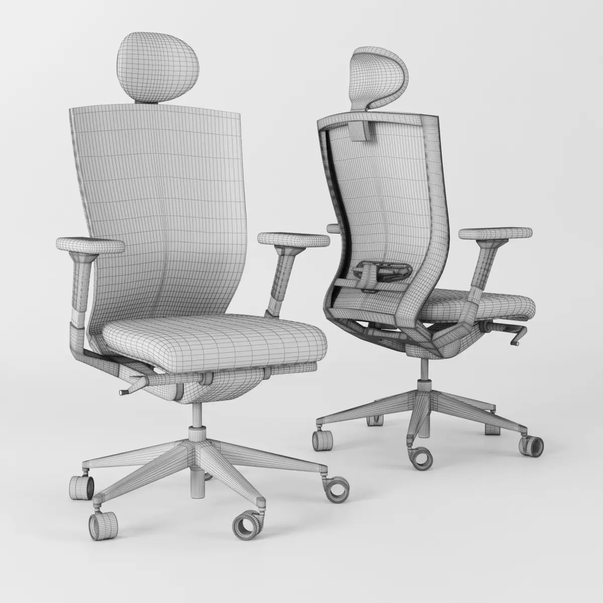 A high-performance ergonomic chair with multiple technical features to give the ultimate in customisability. The backrest is made of black breathable mesh and is equipped with adjustable lumbar support both in height and in depth. The chair is equipped with armrests, with aluminum frame and polyurethane pad, adjustable in 3D. The headrest, optional, is covered in black imitation leather and is adjustable in height and inclination.The 5-star polished aluminum base; the castors are rubberized, available in different types. The chair is equipped with the synchronized mechanism with stroke limiter, which allows you to adjust the inclination of the backrest and the seat synchronously. The gas lift adjusts the height of the seat and the shifter adjusts the depth of the seat. The seat is padded with polyurethane foam.