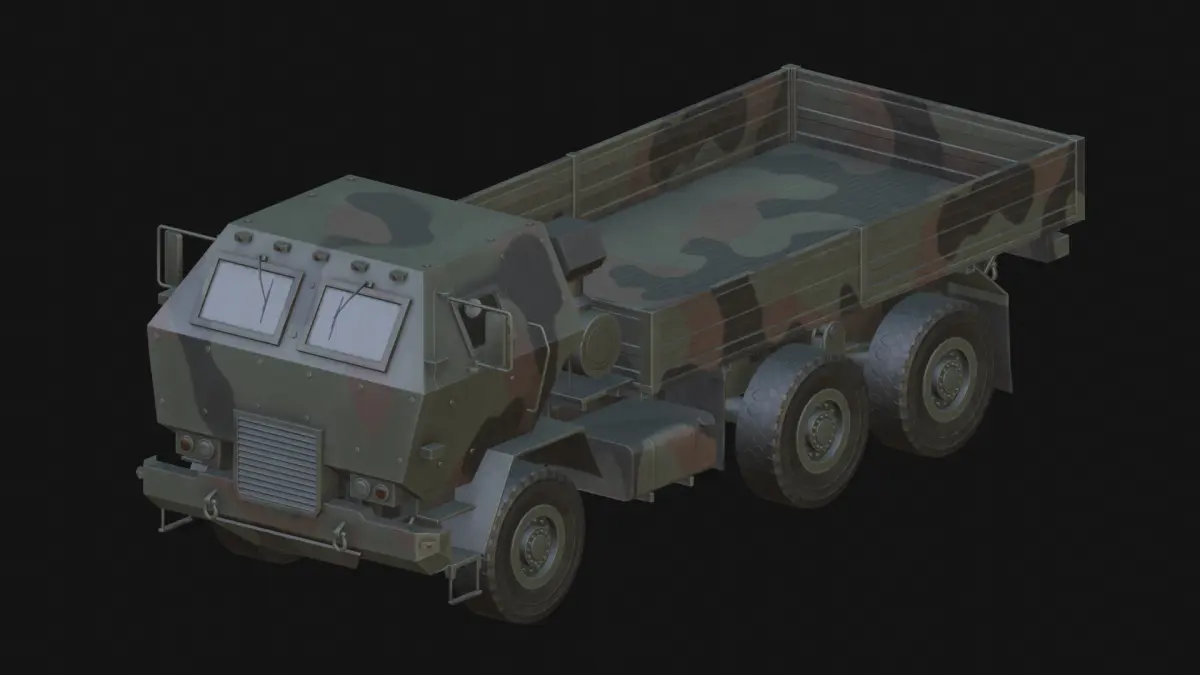 Modern 6x6 military armoured flat bed truck. Optimised geometry, pbr texture set and universal 3d file formats make it perfect for video games, military visualizations and simulations.