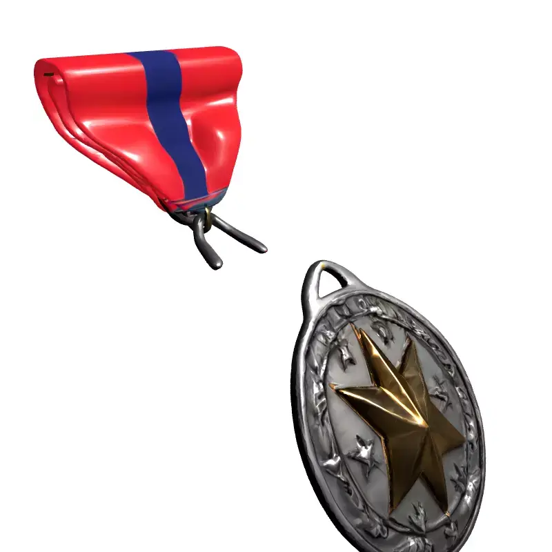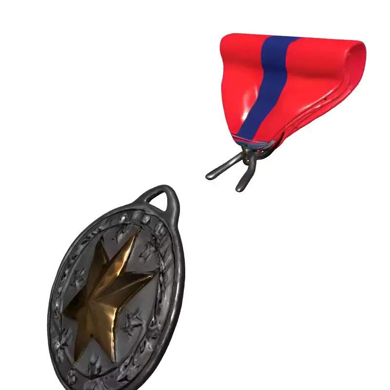 Presenting a meticulously crafted 3D model of a distinguished Military Achievement Medal, complete with a detailed ribbon. This asset represents honor, valor, and distinguished service, making it an ideal addition to various digital projects. The model features a circular silver medal with a prominent central gold star, encircled by smaller silver stars and an elegant laurel wreath pattern. It is suspended from a finely textured red ribbon with a blue stripe, showcasing realistic folds and fabric details. This versatile asset is perfect for integration into game development projects as a collectible item, reward, or decorative prop in military-themed scenes or historical simulations. It can also enhance architectural visualizations for display cases, museum exhibits, or character outfits in animated films, digital art, and virtual reality (VR) or augmented reality (AR) applications. The model boasts clean, optimized topology, ensuring smooth performance in real-time environments while also being suitable for high-quality static renderings and close-up shots. It is fully UV unwrapped with professionally crafted PBR (Physically Based Rendering) textures, providing a realistic and consistent appearance across different rendering engines. The model is ready for subdivision to achieve even higher levels of detail if required. Supported file formats include GLB, OBJ, STL, ABC, DAE, FBX, USD, and PLY, ensuring broad compatibility with most 3D software and game engines. This high-detail asset is designed for immediate use.