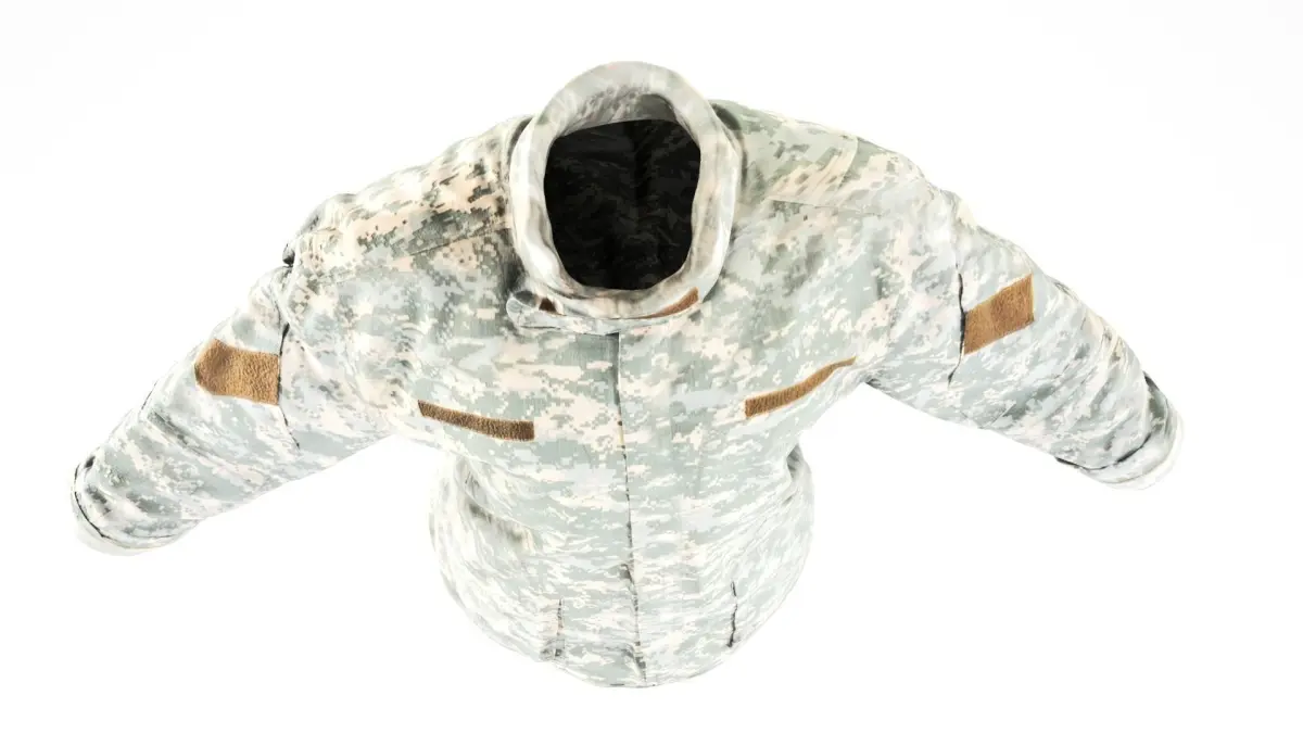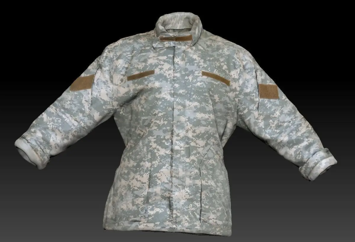 This is a true human size and detailed model of a male jacket of an american camouflage uniform. The jacket is suitable for average model of size S, M, L. May be slightly adjusted for better fitting.