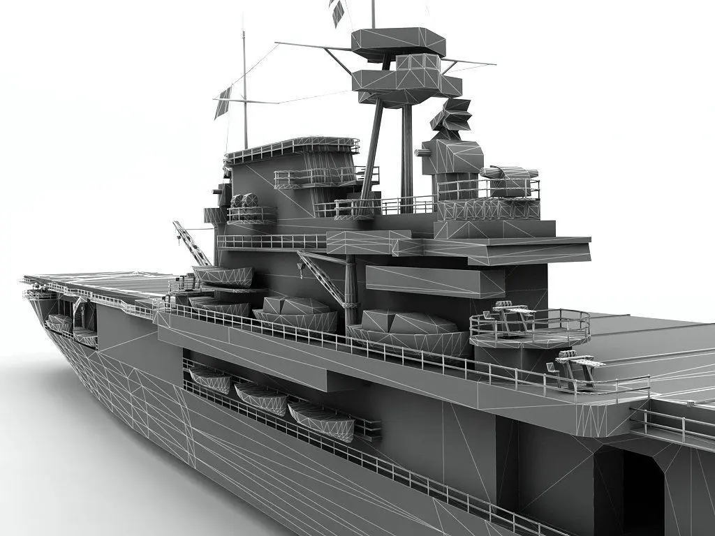 Military Aircraft Carrier Ship USS Yorktown CV-10 - WWII(Some Simple Interior - Complete mapping and linking, no textures) This model was designed to scale from blueprints for a simulator, video game, or live 3D application. Although all the major dimensions are correct (length, height, width, etc.) every exact arc and measurement was not taken into account for engineering purposes. This model is best suited for entertainment and multimedia. Complete mapping and linking, no textures.
