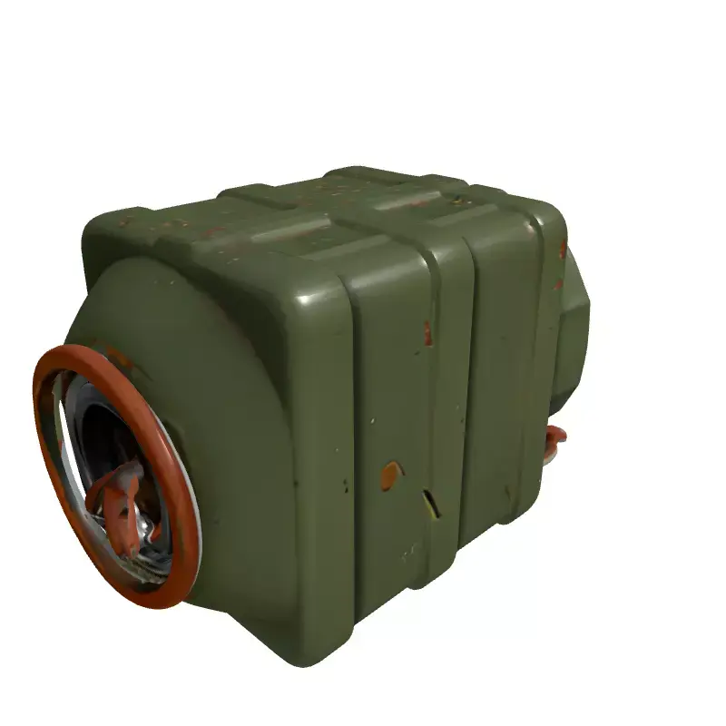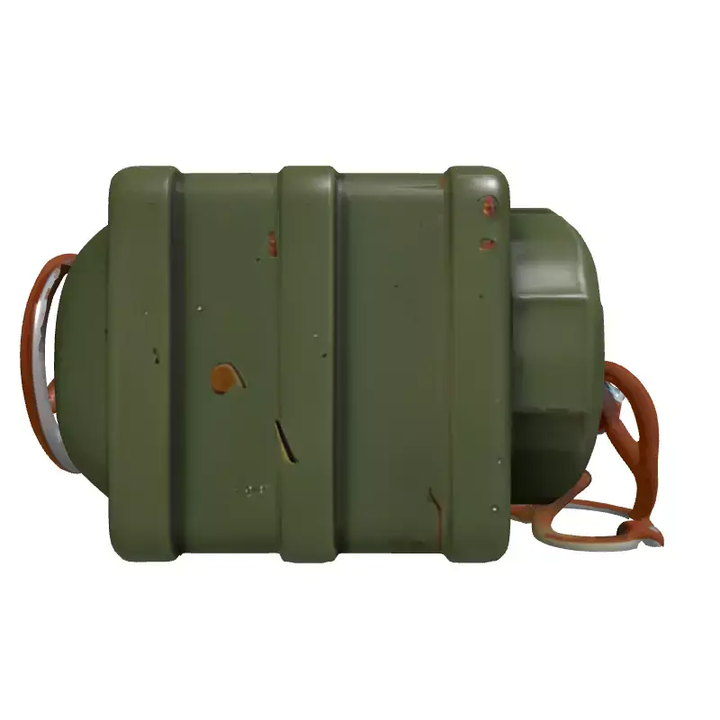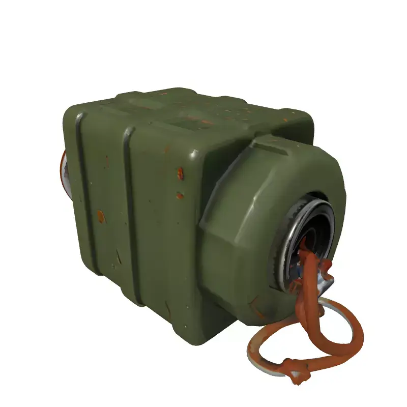 This is a highly detailed 3D model of a military anti-tank mine or demolition charge, designed for realism and versatility in various digital environments. The model features robust construction, a utilitarian olive-green finish, and intricate surface detailing including realistic wear, scratches, and subtle rust effects, making it ideal for close-up renders and immersive scenes. It is perfect for integration into first-person shooter (FPS) games, military simulation projects, historical reconstructions, or as a prop in cinematic CGI and virtual reality (VR) experiences. Its optimized geometry and clean, non-overlapping UVs ensure efficient performance in real-time applications such as game engines (Unity, Unreal Engine) and augmented reality (AR) experiences. It is also highly suitable for high-quality static renderings in architectural visualization, digital art, or film productions. The model is prepared with physically based rendering (PBR) textures, providing accurate material representation across different lighting conditions and enhancing its visual fidelity. Supported file formats include GLB, OBJ, FBX, STL, ABC, DAE, USD, and PLY, ensuring broad compatibility with most 3D software and workflows. The clean, well-structured topology allows for easy modifications or subdivision if higher levels of detail are required, offering flexibility for various project demands. This asset is ready to be dropped into your scene and enhance the authenticity of your military-themed projects.