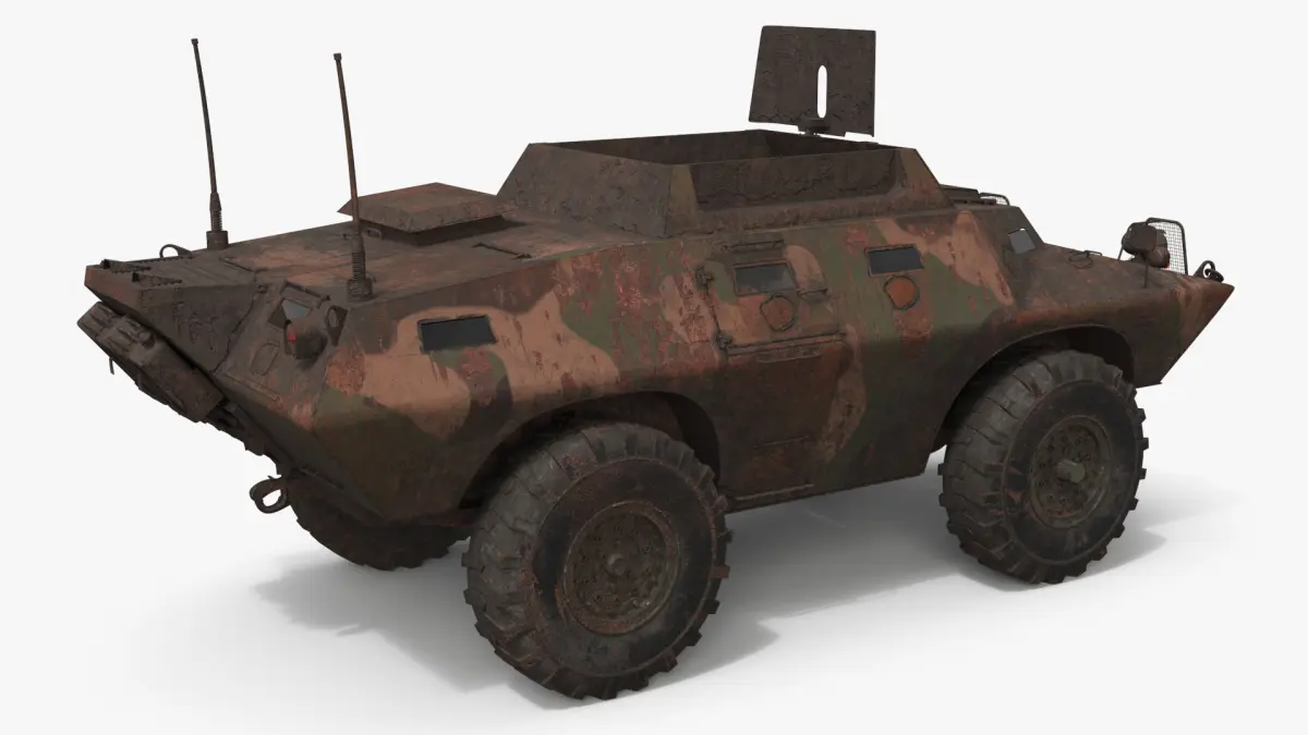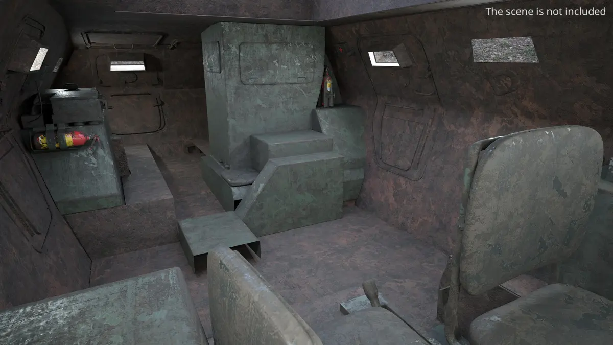 Military APC with Camouflage Dirty Rusted Old with Interior is a 3d model of a military vehicle designed for troop transport and battlefield support, often used to enhance mobility and provide protection in combat zones.