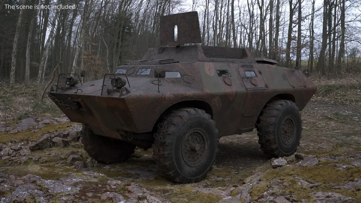 Military APC with Camouflage Dirty Rusted Old with Interior is a high quality, photo real 3d model that will enhance detail and realism to any of your rendering projects. The model has a fully textured, detailed design that allows for close-up renders, and was originally modeled in 3ds Max 2020 and rendered with V-Ray. Renders have no postprocessing!