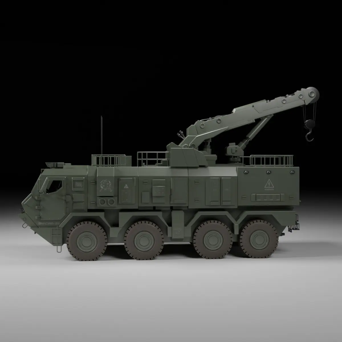 A sturdy Armored Recovery Vehicle from a historical timeline, featuring a bulky and angular shape with a dark olive green color. The vehicle is equipped with a large crane at the back, used for lifting heavy objects, and has a rough, textured surface to blend in with the battlefield environment. This imposing 3D model of a military armored recovery vehicle (ARV) is built for heavy-duty missions in any digital battlefield. Featuring realistic detailing, robust geometry, and functional elements like a winch and antenna array, it’s ideal for war games, simulations, or cinematic renderings. Game-ready yet high in fidelity, it’s a must-have for any military asset collection.
