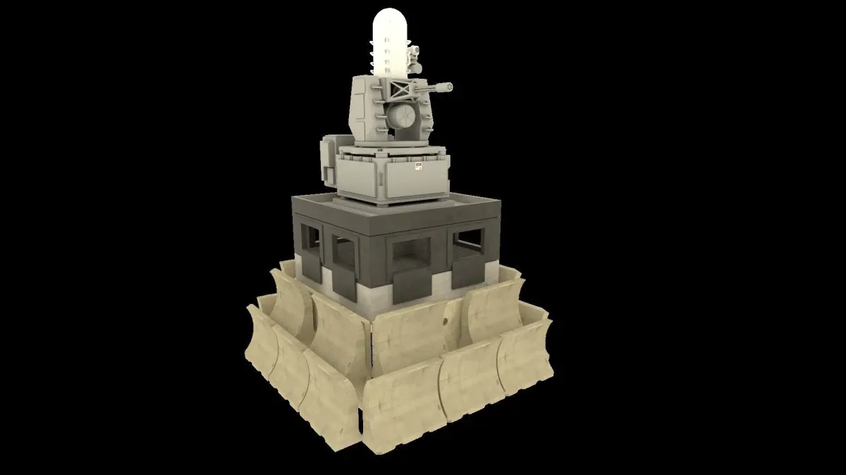 Military assets modeled in blender.5 towers , remote weapon systems and concrete blocks.