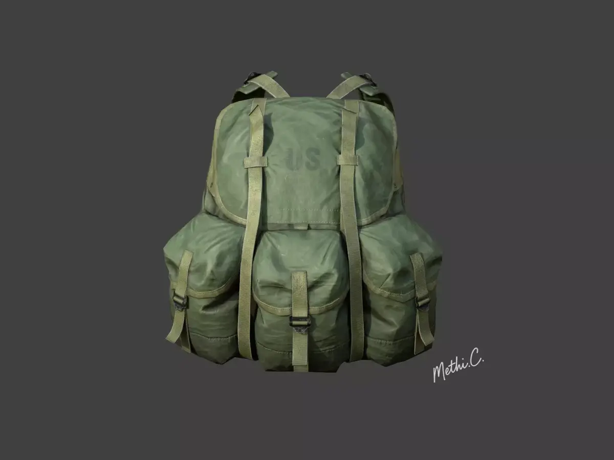 This is a high-quality realistic military backpack optimized for games, cinematics, and real-time applications.