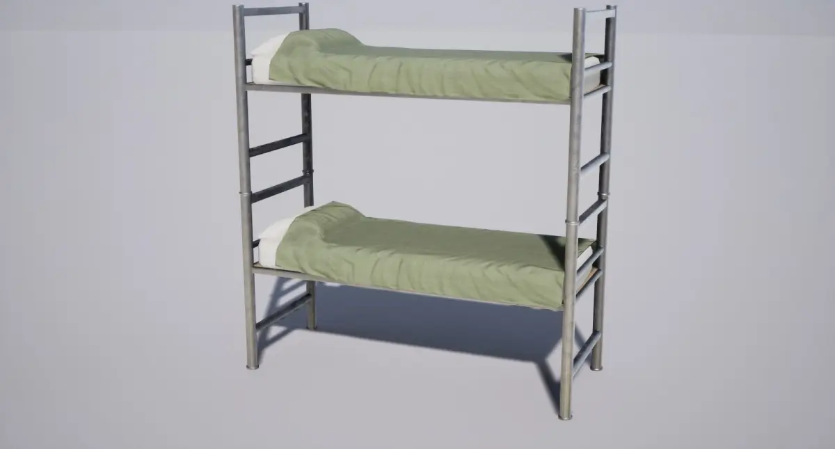 3D model of Military Beds with PBR textures, ensuring high fidelity and realism. This low poly, game-ready asset has been designed with attention to detail, offering an optimal blend of quality and performance for various applications.