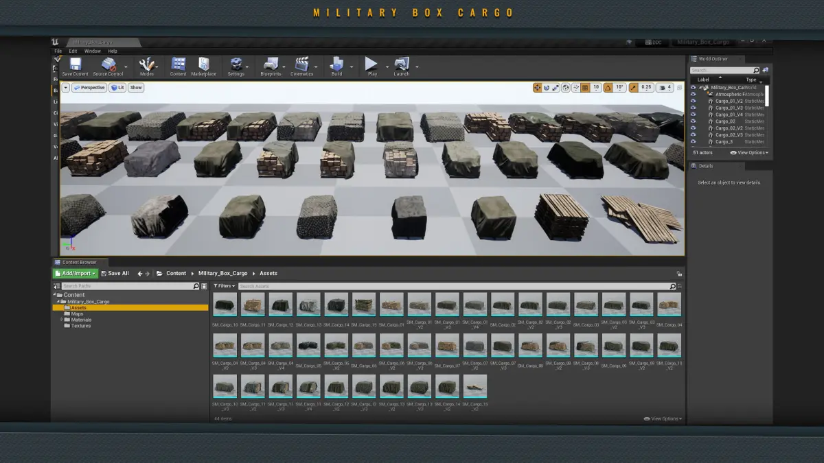 Do you want to fill your environment with military cargo? We provide you with a product with 44 different types of military cargo along with 14 cover materials and you can start your prototyping or basic design to modify and achieve the result. the polygon budget depends on the complexity and detail, with the polygon range between 10k and 35k polygons.