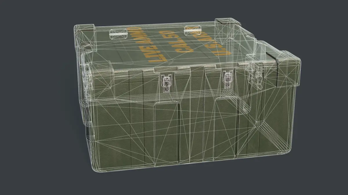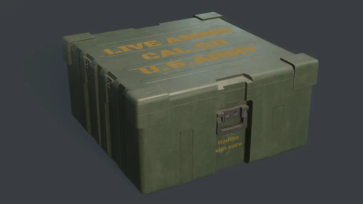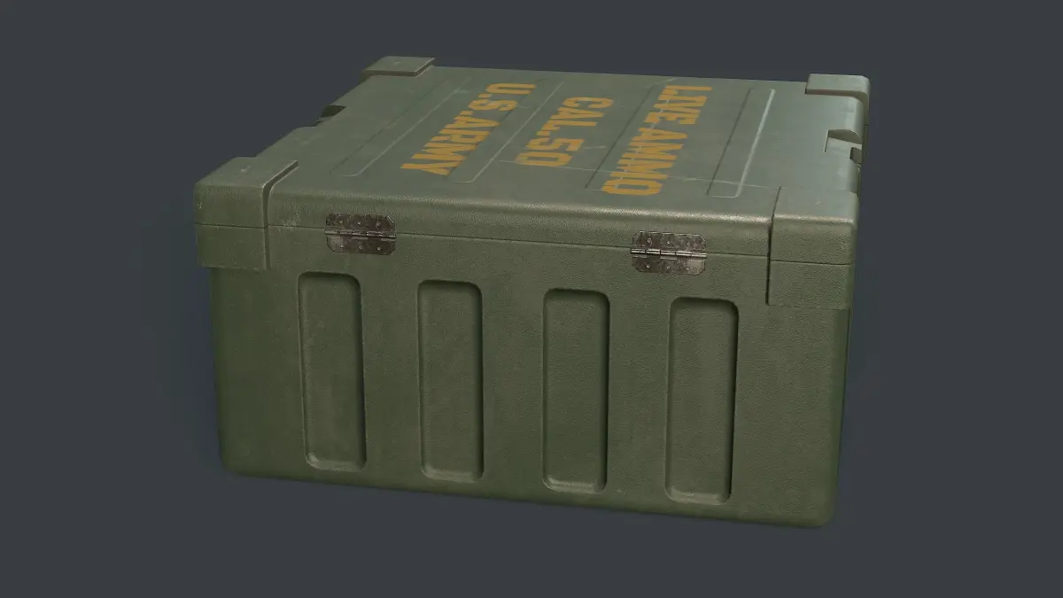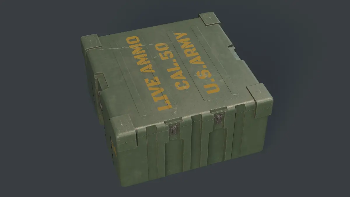 Low poly ammunition box. Render done in Marmoset Toolbag. Model consist of 2432 triangles.4k textures: -albedo; -normal;