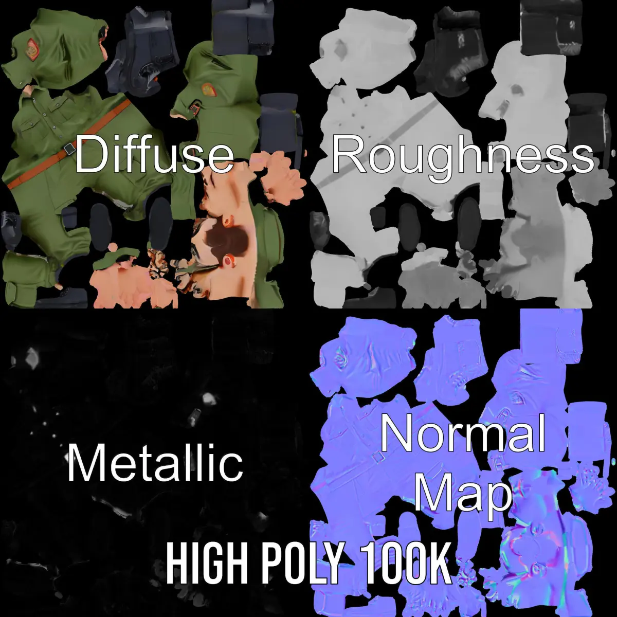 Included animation of Idle, Walking, Running etc. It's full compatible with Mixamo RIG.This character model comes in 3 levels of detail: low-poly for mobile games, mid-poly for standard games, and high-poly for cinematics. The model is fully rigged and ready for animation. It includes PBR textures (4096x4096), including diffuse, normal maps, and metallic/roughness maps. The character is provided in T-pose and can be easily imported into any modern game engine or 3D software. Perfect for games, animations, or virtual reality applications. Please like and comment if you find this model useful!