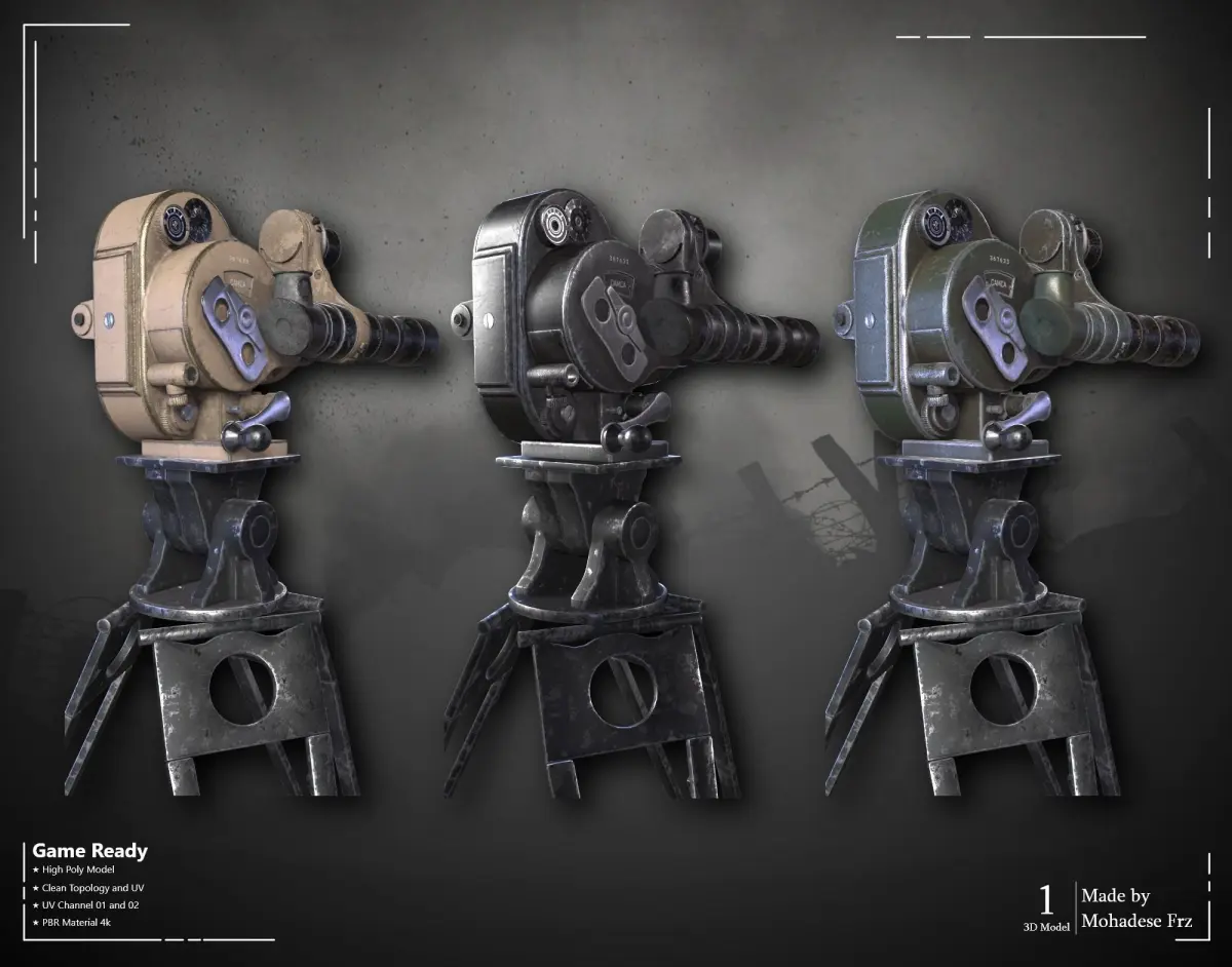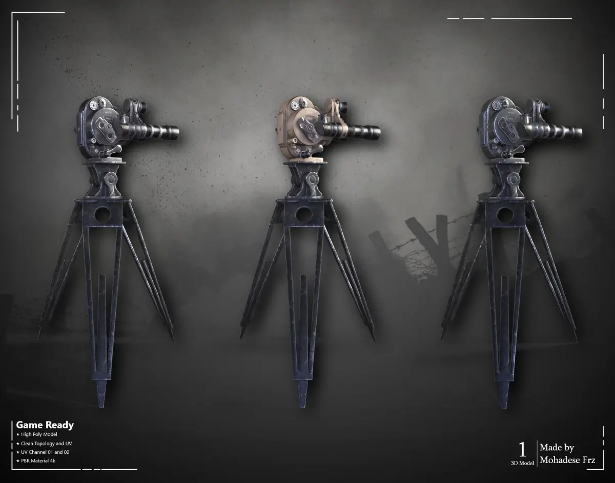 This package includes a 3D model of a military camera. During World War II, soldiers used this camera to record moments of war. You can use the model and material in any 3D software.