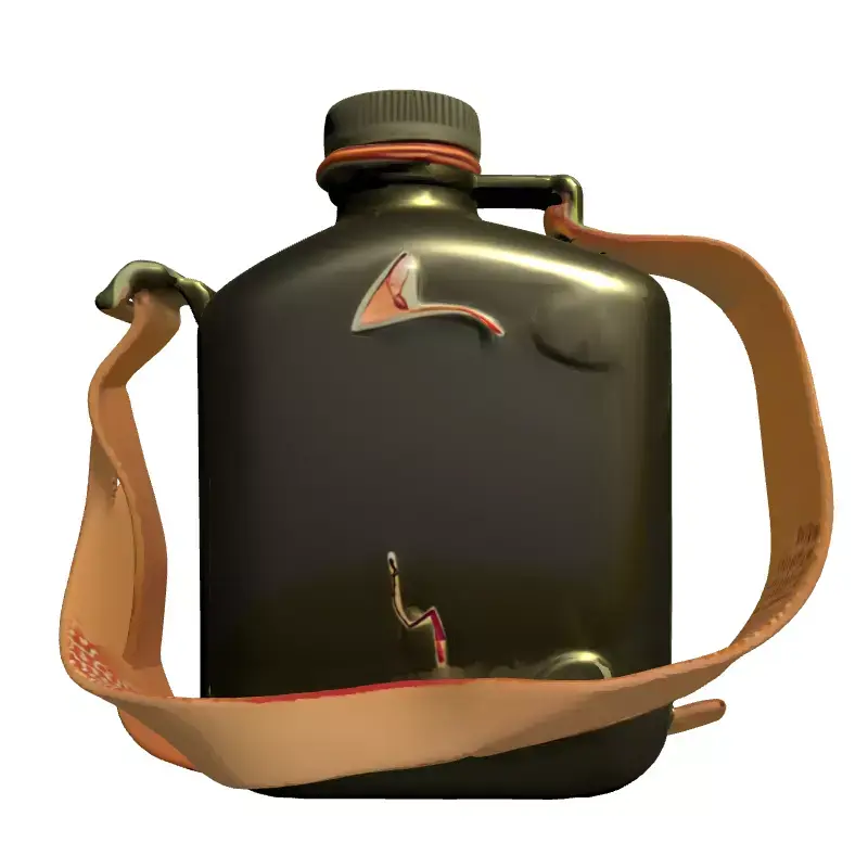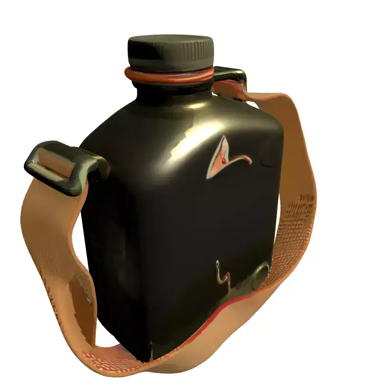 This is a high-quality 3D model of a military-style field canteen, complete with an adjustable fabric strap, designed for authenticity and versatile integration into various digital projects. The model accurately captures the utilitarian aesthetic of real-world military equipment, featuring a rugged, olive-drab finish and subtle signs of wear and tear, enhancing its realism. It is perfectly suited for use in demanding real-time applications such as first-person shooter (FPS) games, survival simulations, or adventure titles, where realistic props are essential for immersion. Beyond gaming, this model is an excellent asset for historical visualizations, military-themed architectural renders, augmented reality (AR) and virtual reality (VR) experiences, and detailed digital art compositions. The model is meticulously crafted with clean, optimized topology, ensuring smooth performance and easy manipulation within any 3D environment. It comes fully UV unwrapped with efficient texture packing, allowing for seamless application of physically based rendering (PBR) textures that provide lifelike surface details, reflections, and material properties. Supported file formats include GLB, OBJ, FBX, DAE, and USD, ensuring broad compatibility across major 3D software and game engines. While optimized for real-time performance, its detailed texturing also makes it suitable for high-resolution static renderings and cinematic sequences. This canteen is ready to be dropped directly into your scene, offering a reliable and visually striking prop to enrich your digital world.