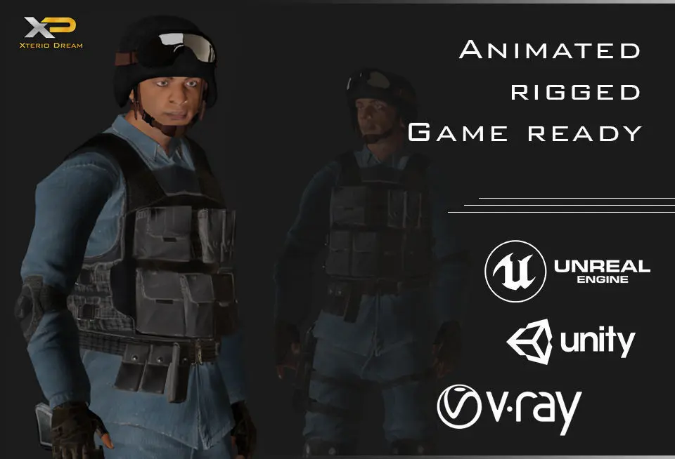 Model includes full body and clothes, different high resolution maps for both body/face and clothes including diffuse, normal, reflection, gloss and displacement. All textures are from 1K upto 4K (body and face ). Poly counts are minimized without losing quality of model. For further information feel free to contact.