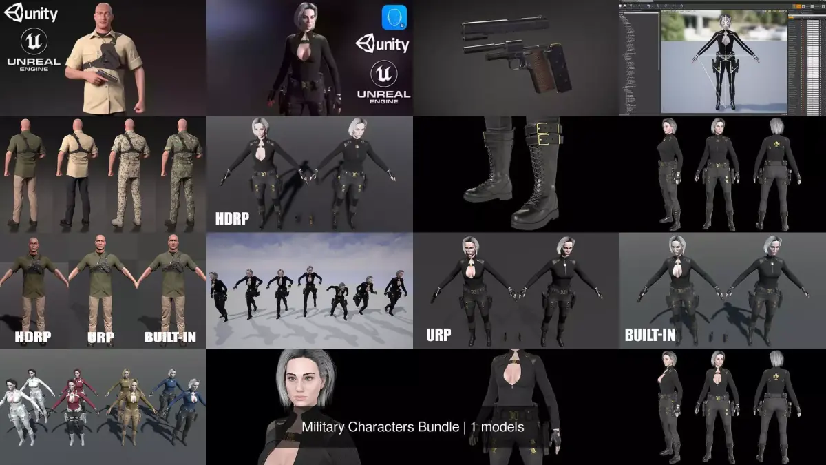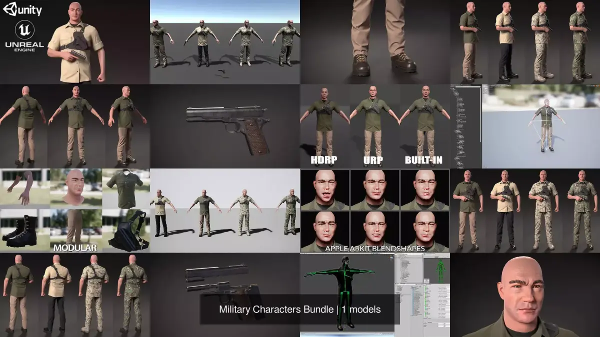 The Military Characters Bundle offers three realistic character models, ideal for action shooter or stealth action games. Enhance your game development with authentic and diverse military characters, adding depth and excitement to your project.