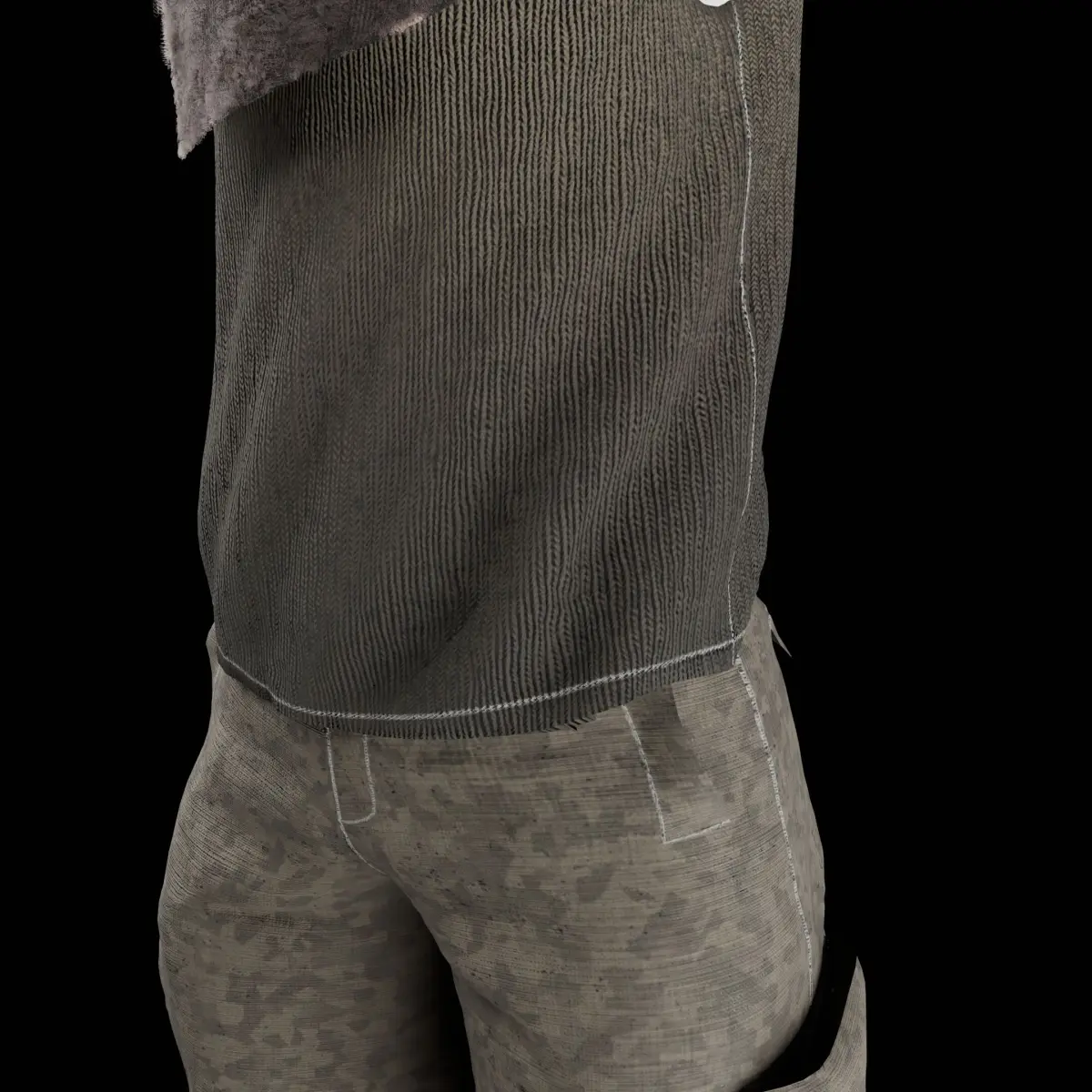 Midpoly clothes model, fitted to a character (the model is not rigged and the clothes are all seperated! ). Ideal for high quality movie production in Unreal Engine, but also usable for game characters.