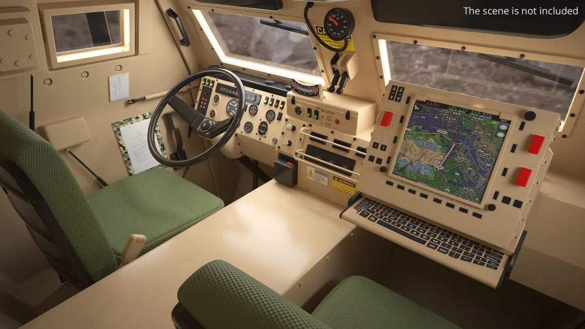 Military Command Control Truck with Enclosed Module Desert is a 3d model of a military-grade, light tactical truck designed for versatile off-road capabilities and protection in combat situations.